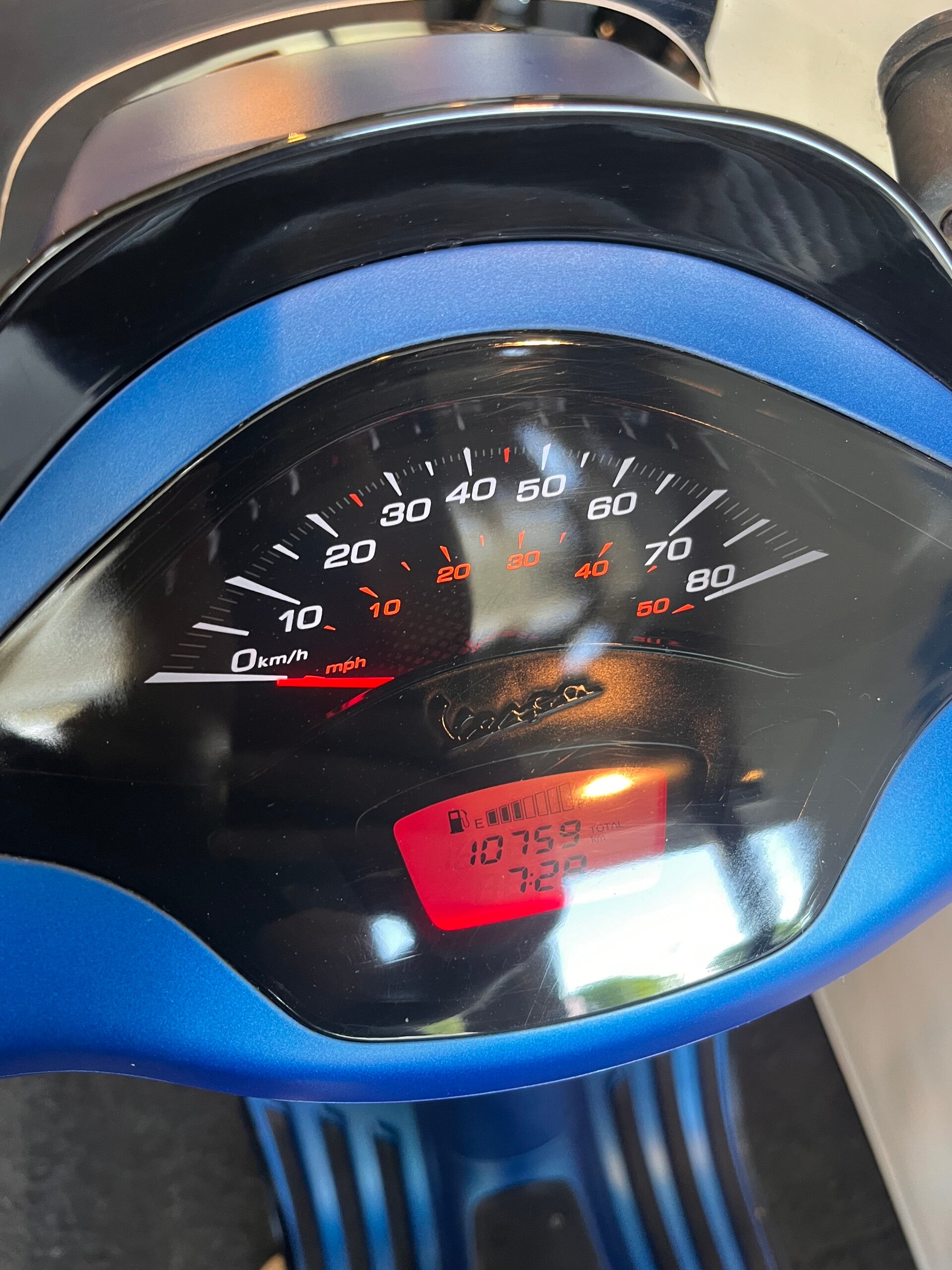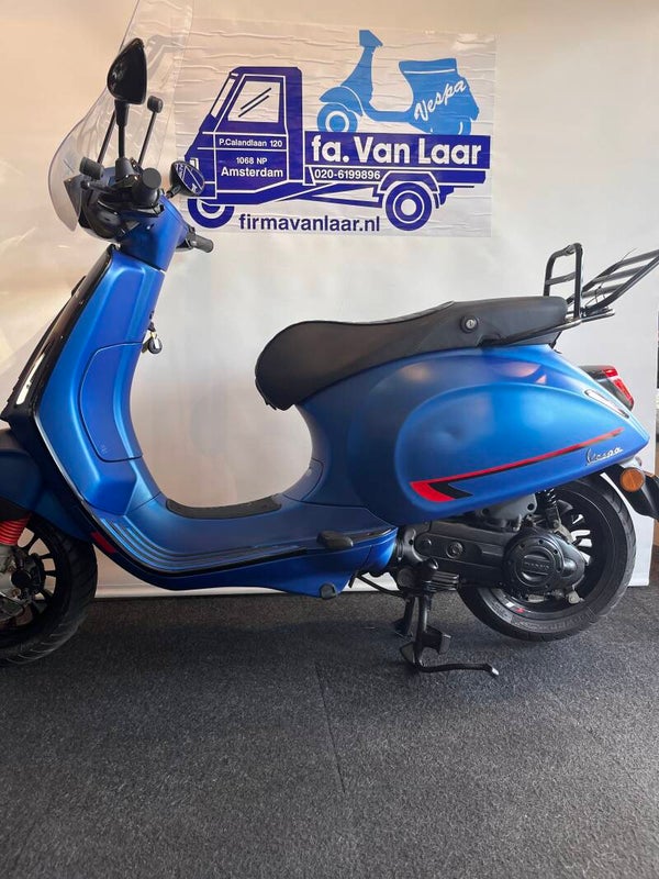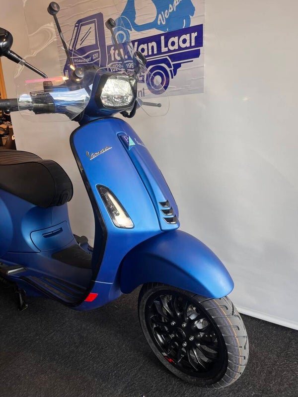 Deze mooie Vespa Sprint in het mat blauw is bij ons te koopWordt geleverd met de volgende optie's - Hoog windscherm- Achter rekje- Smoke tellerglas- Korte Glans zwart speigelsHij is en bromfietsEn heeft maar 10759 km geredenKomt uit 2020