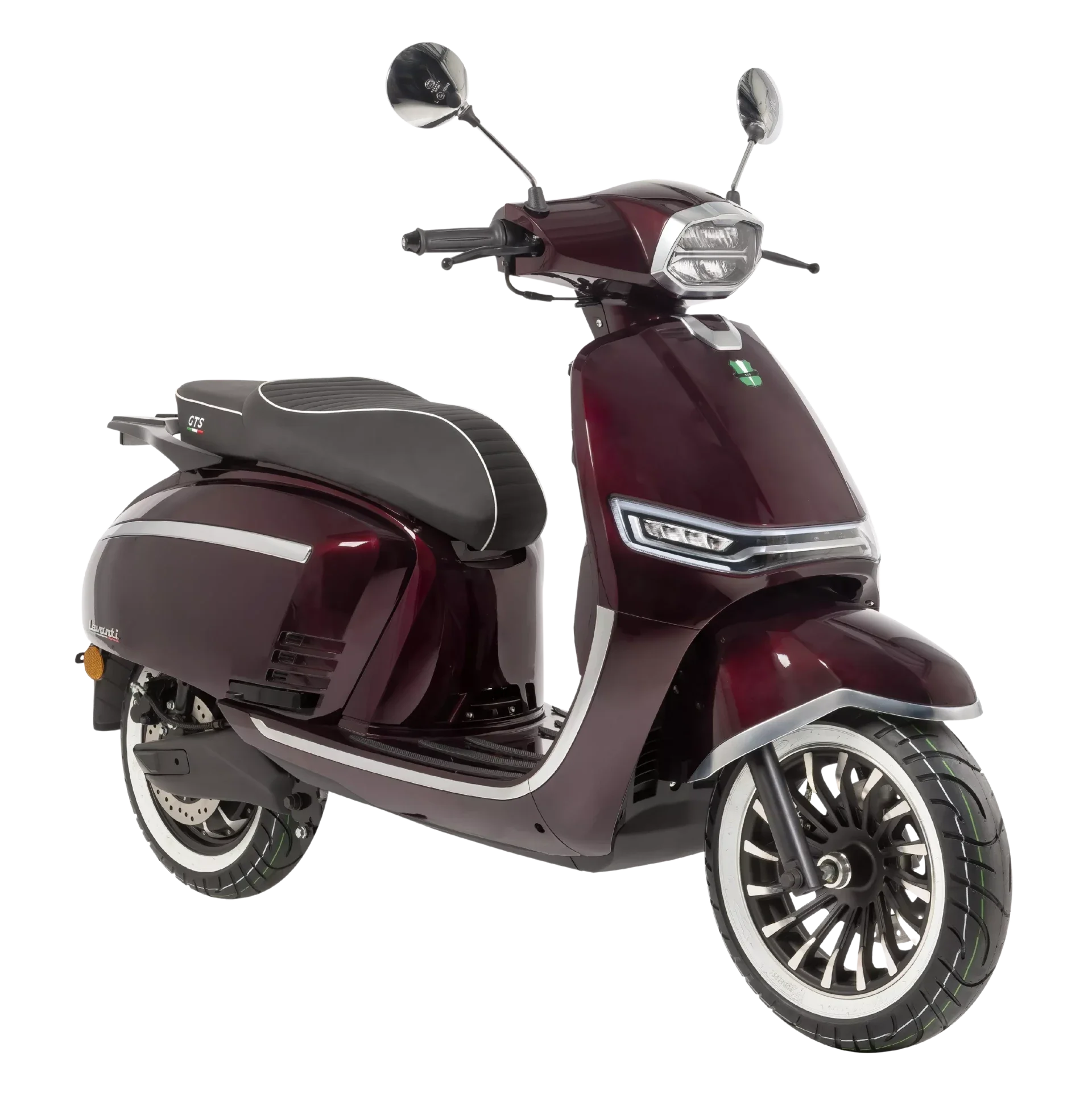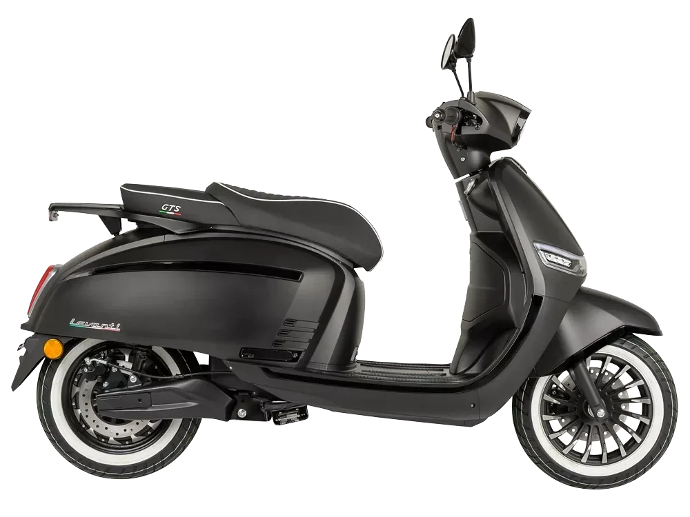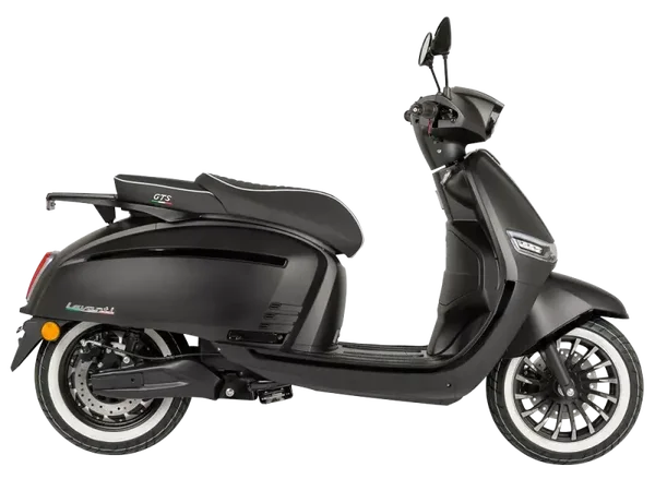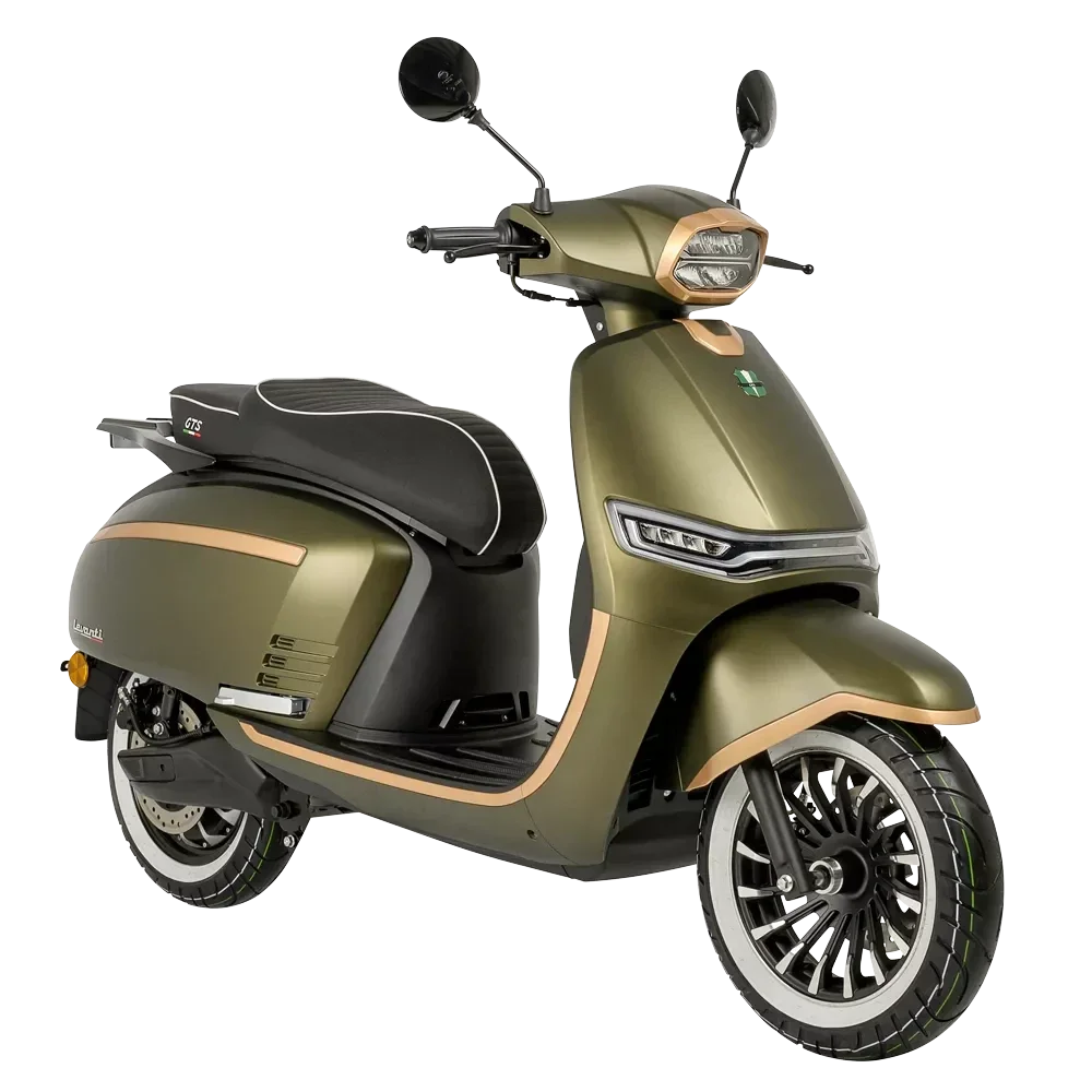 De GTS E-Levanti is een stijlvolle elektrische scooter met een retro-uitstraling en moderne technologie. Uitgerust met een krachtige 3000W naafmotor en een 72V 55Ah accu, biedt hij een actieradius tot 100 km (25 km/u) of 80 km (45 km/u). De scooter beschikt over een digitaal dashboard, cruise control, achteruitrijfunctie en een alarmsysteem met afstandsbediening. Met zijn 12” aluminium velgen, inklapbare duo-steps en comfortabele buddyseat is de E-Levanti ideaal voor zowel stadsritten als langere afstanden. Verkrijgbaar vanaf €3.399,- in diverse kleuren, waaronder Mat Dark Olive Green met white wall banden.